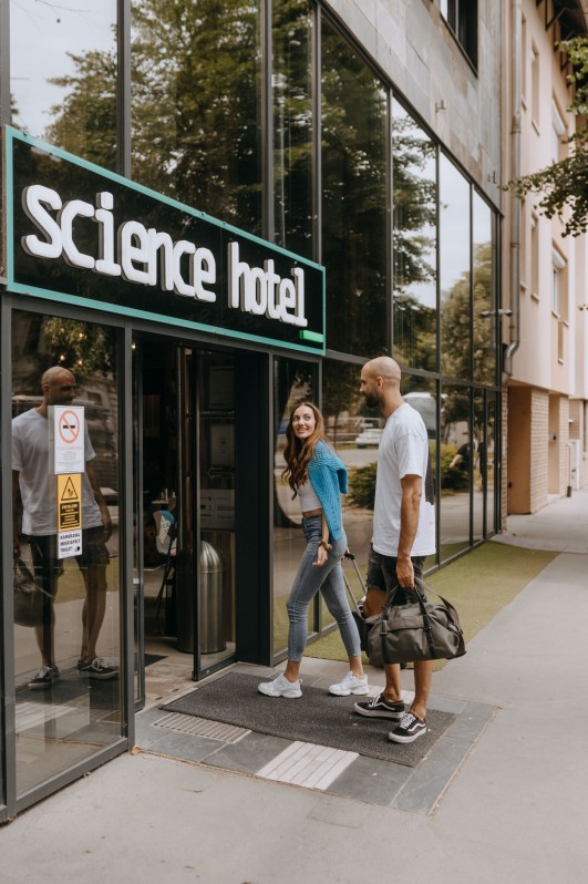 Un hotel de design cu adevărat unic, cu 43 de camere tematice și spații pentru evenimente inspirate de știință, a fost proiectat cu mobilier și tehnologie modernă, concentrându-se pe viața științifică din Szeged și pe protagoniștii săi.